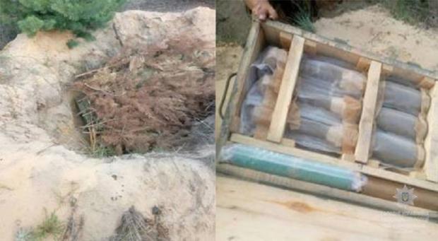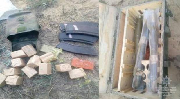 «В дерев’яних ящиках прикритих гілками поліцейські вилучили 9 пострілів до гранатомету РПГ, 6 порохових зарядів до гранатомету РПГ, близько 500 набоїв та 2 тротилові шашки вагою 400 грамів», - йдеться у повідомленні.