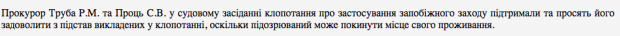 Такую меру пресечения в виде личного обязательства Труба обосновывал тем, что Шевцив в составе группы из 50 человек в районе села Гамалиевка Пустомитовского района Львовской области в ночь на 26 ноября 2013 года организовал блокирование трассы "Киев-Чоп".