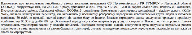 На основании этого постановления милиция блокировала автобусы с протестующими, которые направлялись в Киев на Евромайдан.