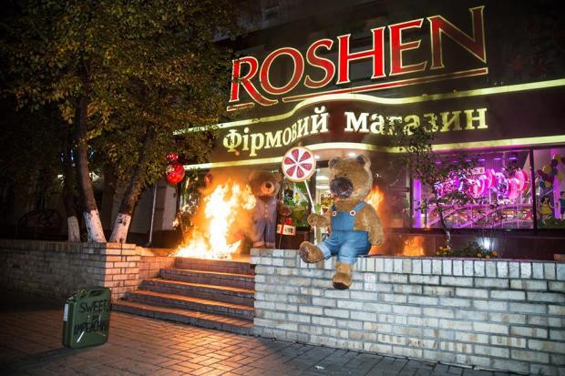 Акция посвящена жадности Президента Украины, который даже под страхом политической смерти не готового расстаться со своими конфетами. Пока винницкое плюшевое семейство продолжает накапливать на зиму подкожный жир, народ Украины сосет костлявую лапу".
