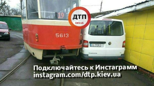 "ДТП в Києві на площі Тараса Шевченка: герой парковки зупинив рух трамваїв. Ось що значить не в той час і не в тому місці! При повороті трамвай" притиснув "мікроавтобус Volkswagen, припаркований в недозволеному місці. В результаті - рух трамваїв по цьому маршруту зупинено", - пишуть автори посту.
