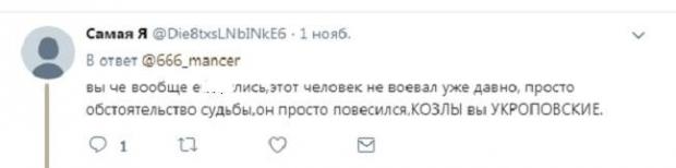 «Просто обстоятельства судьбы, он просто повесился», - написал «Самая Я» с оскорблениями украинцев.