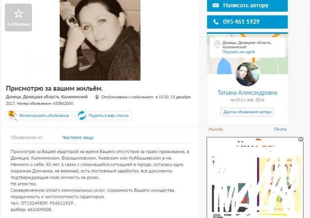 "Нова хвиля послуг в ОРДЛО від "немолодих милих жінок". "Догляну за (поки) вашою квартирою в ОРДЛО за право пожити в ній, ще й сама квартплату оплачує"... Але! Потім у певний момент ви, якщо і повернетеся в ОРДЛО, то вже не на вашу, а в за низкою "офіційно дозволених" окупаційною владою причин "націоналізовану" квартиру зі, найімовірніше, новими господарями і мешканцями!" - пише він.