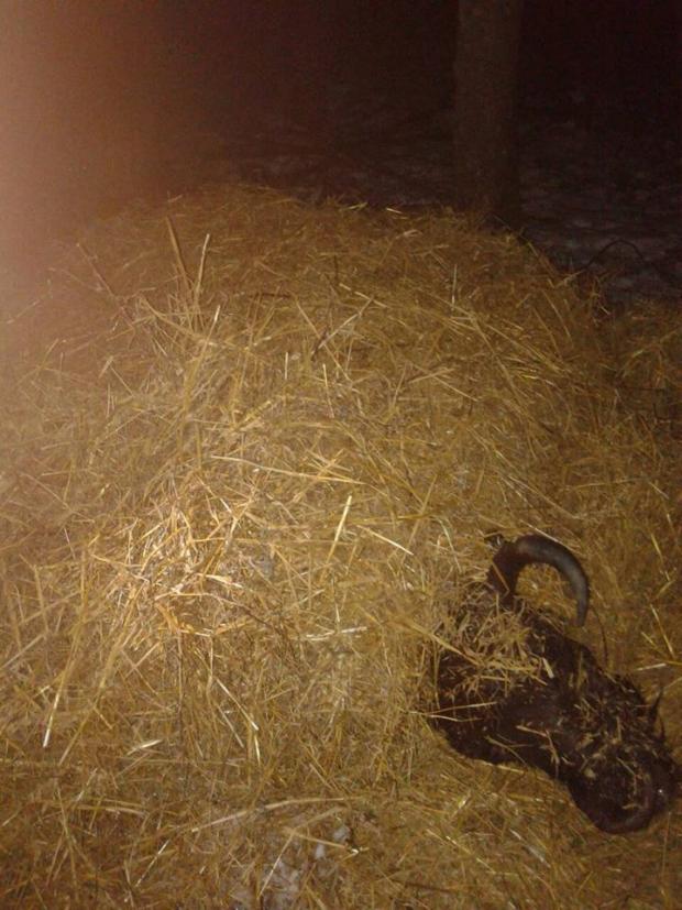 Після тривалого перебування в каналі з холодною водою зубр постраждав від переохолодження, та не міг самостійно рухатися. Тому, рятувальники привезли солому, аби допомогти тварині зігрітися.