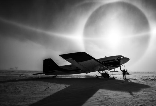 Зображення виглядає як кадр з науково-фантастичного фільму, в якому астронавт вперше бачити чуже сонце на пустельній планеті. Проте, знімок був зроблений недалеко від Південного полюса. Фотограф зумів зафільмувати явище під назвою паргелій.