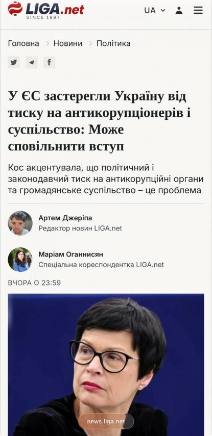 "Тиск на антикорупційні відомства і громадянське суспільство може сповільнити процес вступу України до Європейського Союзу, якщо не буде вжито рішучих заходів," — Марта Кос, європейський комісар із питань розширення й сусідства. Проблема в тому, що ті ...