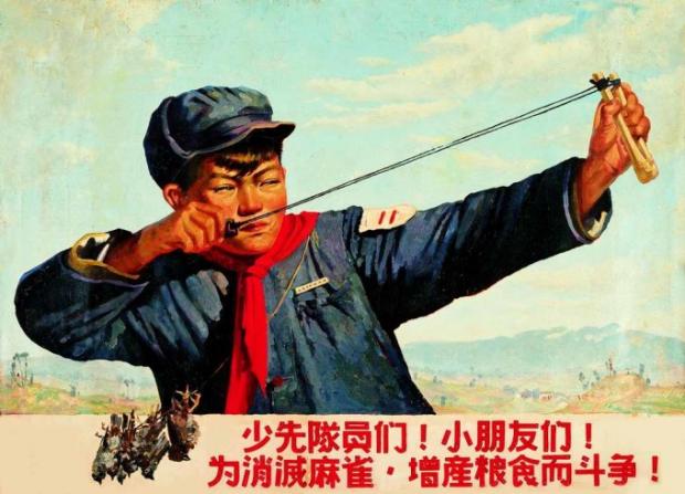 Приказ Великого Кормчего – обязателен к исполнению. И десятки миллионов китайцев начали натурально охотиться на воробьёв. Их сбивали палками. В них кидались камнями. По ним стреляли. Их травили.