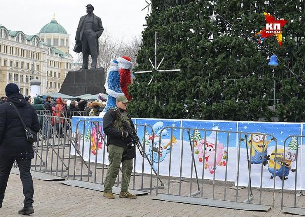 Соцмережі шокувало фото людини, озброєної автоматом під новорічною ялинкою в окупованому Донецьку. Фото виклав блогер Денис Казанський в Twitter, передають Патріоти України.