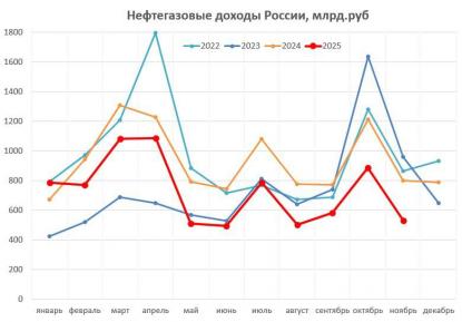 Нафтовогазові доходи Росії продовжують стрімко падати. У листопаді вони обвалилися одразу на 34% у порівнянні з минулим роком, що стало одним із найглибших просідань з початку повномасштабного вторгнення, передають Патріоти України. Йдеться про мільярд...