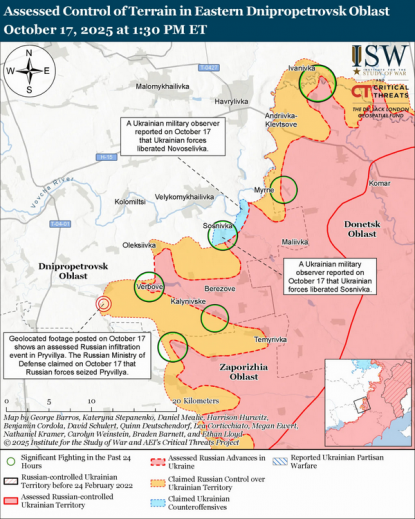 Українські збройні сили досягли успіху в Дніпропетровській області. Про це йдеться у черговому звіті Американського Інституту вивчення війни (ISW). Аналітики, посилаючись на українські джерела, заявили, що на Олександрівському напрямку ЗСУ вдалося звіл...