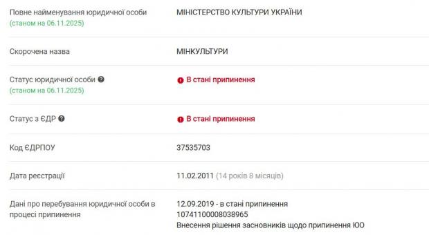 Як повідомило джерело у Міністерстві культури, старе міністерство не ліквідоване, бо не вирішено питання припинення його обліку у Пенсійному фонді та Фонді соціального страхування. Причина – не закрита заборгованість по заробітній платі перед двома його колишніми працівниками. Ця заборгованість виникла значно пізніше дати ліквідації міністерства по суду. За даними джерела, Міністерство культури молоді та спорту яке утворилося і стало правонаступником Міністерства культури, мало прийняти на роботу по переводу усіх захищених працівників попереднього відомства. Зазначається, що цих двох працівників у нове міністерство не прийняли, хоча в списках на переведення вони були і згодом у судовому порядку довели незаконність неприйняття на роботу.
