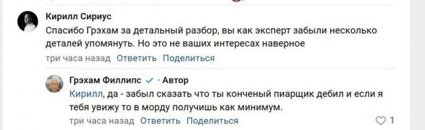 Тепер Z-людожери у своїх каналах цькують блогера та загрожують йому розправою. Причому найсмішніше, що серед них такий самий фрик як і сам Сіріус – британський пропагандист Грем Філліпс, який уже пообіцяв набити Сіріусу морду.