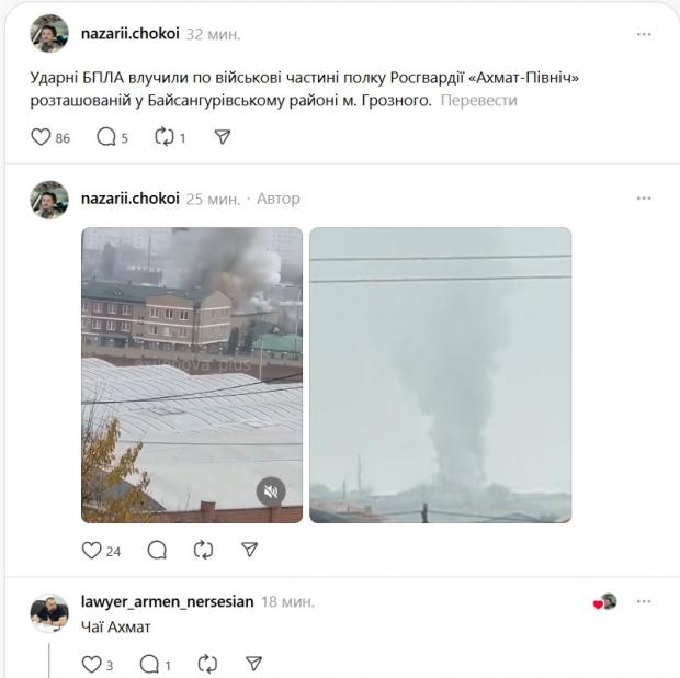 Інцидент стався у Байсангурівському району Грозного у казармах "Ахмат-Север", повідомили у Telegram-каналі Exilenova. Стверджують, що стався приліт дрона. OSINTери встановили точку займання — вона розташована у військовому містечку на півночі Грозного. Поки мер міста не підтвердив, що сталась пожежа у казармах кадирівців, однак користувачі у соцмережах активно поширюють фото та відео.