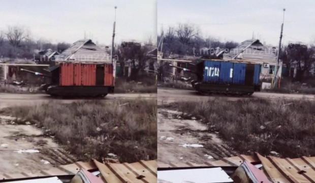 Обидві машини отримали незвичну для бойових дій надбудову у вигляді стандартних морських контейнерів, змонтованих поверх шасі. У лобовій частині контейнерів окупанти зробили отвори для роботи гармати, а зверху накрили конструкцію додатковою металевою сіткою. Ймовірно, для захисту від дронів.