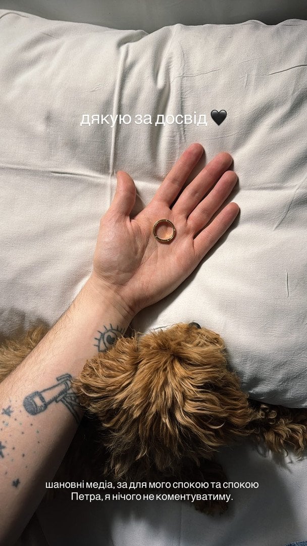 Виконавець опублікував фото, на якому тримав у руці обручку. Водночас співак звернувся до колишнього коханого та подякував йому за пройдений разом досвід.