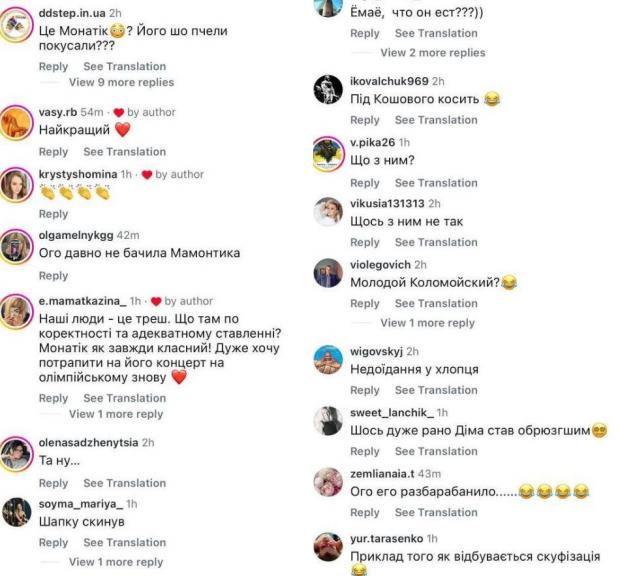 Хвиля хейту з'явилася під відео з концерту, яке в Instagram опублікувала одна з юних прихильниць співака. Дехто з коментаторів зізнався, що не впізнав Монатіка, інші ж вдалися до порівнянь з іншим публічними особами, зокрема Ігорем Коломойським, Євгеном Кошовим та Дмитром Клімашенком.