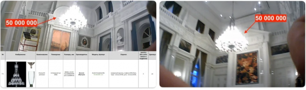 За даними розслідувачів, на території палацу Путіна є підземний хокейний комплекс (зведення якого коштувало навіть дорожче за сам палац), а також ресторанний комплекс на 5 тис. квадратних метрів. У вітальнях висять люстри ціною майже 50 мільйонів рублів кожна.