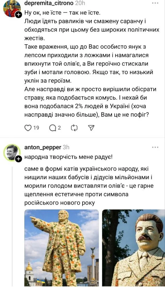 Користувачі Threads активно підтримали кампанію проти олів'є на Новорічному столі.