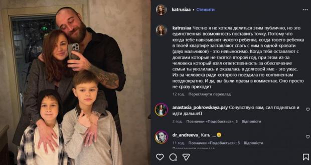 "Чесно, я не хотіла ділитися цим публічно, але це єдина можливість поставити крапку. Тому що, коли тобі нав'язують чужу дитину, коли твою дитину у твоїй квартирі змушують спати з нею в одному ліжку (двох хлопчиків) – це нестерпно", - наголосила Катерина.