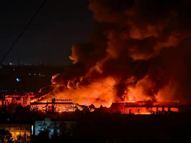 На оприлюднених Telegram-каналом Supernova+ відео видно, що горить гіпермаркет "Сигма".