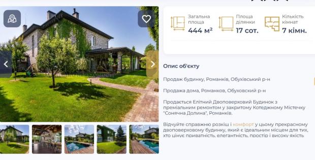 Він також показав відповідне оголошення про продаж, опубліковане на сайті одного з українських агентств із нерухомості. В оголошенні зазначено, що двоповерховий розкішний будинок "має все потрібне для комфортного проживання".