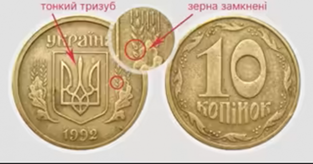 Особливу цінність для колекціонерів мають 10 копійок 1992 року — одного з перших років грошового обігу незалежної України. За рідкісний різновид цієї монети сьогодні готові платити від 10 до 18 тисяч гривень, а іноді сума доходить і майже до 20 000 грн.