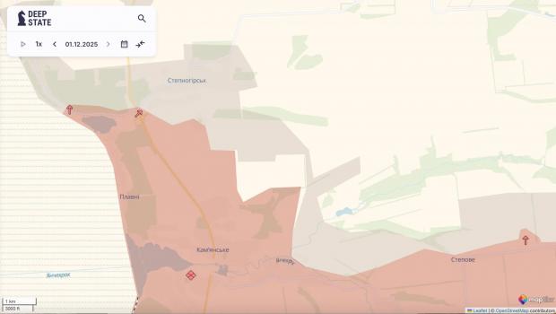Російська армія окупувала Козацьке, а також просунулася в чотирьох населених пунктах у Донецькій області та в одному — в Запорізькій області. Про це у вівторок, 2 грудня, повідомив проєкт DeepState, передають Патріоти України.