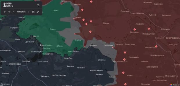 Російські окупанти за минулу добу просунулися поблизу кількох населених пунктів в Донецькій області. Про це повідомили аналітики OSINT-проєкту DeepState у вівторок, 18 листопада, передають Патріоти України.