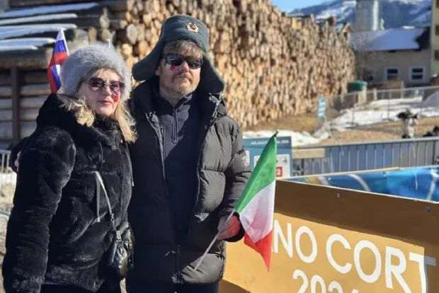 Пропагандисти повідомляють, що сімейна пара із Молдови прийшла підтримати російського лижника Савелія Коростельова на змагання зі скіатлону.