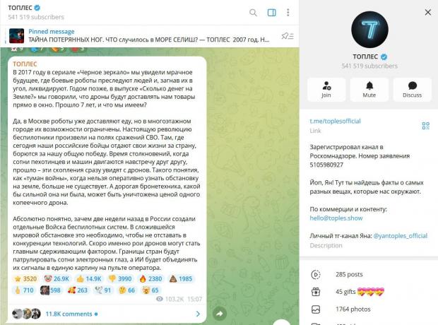 Російський відеоблогер та телеведучий Ян Лапотков, більш відомий як Ян Топлес, висловився на підтримку агресивної війни проти України. Автор науково-розважального YouTube-каналу "Топлес", на який підписано понад 7 мільйонів користувачів, на початку повномасштабного вторгнення записав відео про те, як працює пропаганда. У ролику Лапотков заявив, що людей "загнали в нову реальність". Варто зазначити, що зараз цього відео на каналі блогера вже немає, передають Патріоти України.