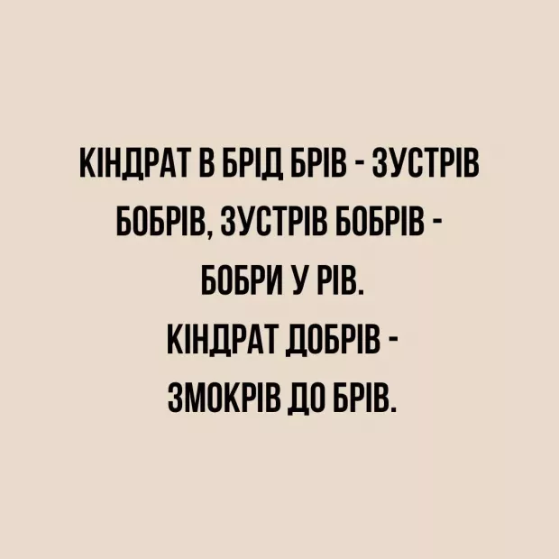Загалом, скоромовки – це короткі фрази, речення або цілі віршики, побудовані так, щоб ускладнювати вимову через поєднання подібних звуків, складних звукосполучень і швидкого ритму. Іван у своїй добірці дає кілька вправ на поєднання звуків [в] і [х], [ж] і [ш], [к], [л] та [в] і одразу два завдання на [р] з іншими приголосними.