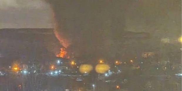Також у місті виникла пожежа. Попередньо — після влучання в район тютюнової фабрики у Будьонівському районі міста. В цьому ж районі розташована електрична підстанція.