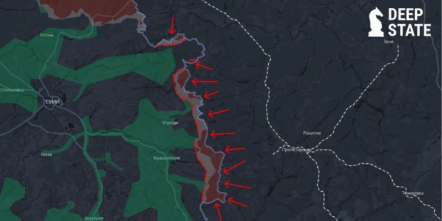 Аналітики кажуть, що початком таких просувань стало, певною мірою, село Грабовське, а сьогодні продовжується тиском в районі Миропільського. DeepState зазначає, що там можна побачити просування противника в останньому оновленні.