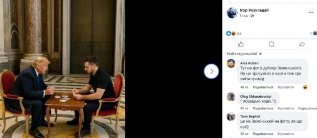 Зустріч президента України Володимира Зеленського, який прилетів на прощання з Папою Франциском 26 квітня, з президентом США Дональдом Трампом, миттєво породила низку мемів. Українці активно взялися публікувати фото політиків з вигаданими жартівливими дописами, нібито про те була розмова. Зокрема одну з добірок смішних світлин опублікував на своїй сторінці в Facebook медіаексперт Ігор Розкладай, передають Патріоти України.