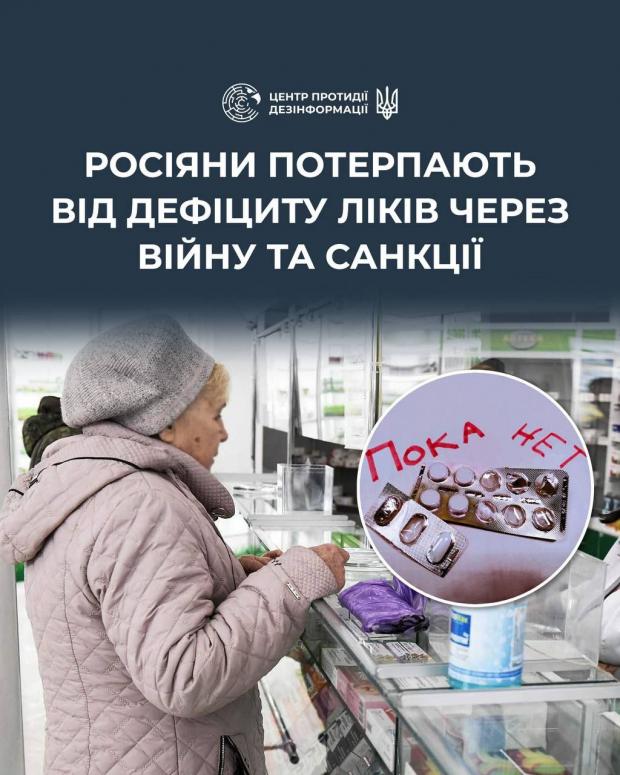 Вказується, що дефіцит ліків у рф стає все критичнішим і його вже не можна пояснити локальними збоями. "Поки путін витрачає величезні кошти на війну, а санкції поступово нищать економіку, система охорони здоров’я занурюється у глибоку кризу, наслідки якої росіяни відчуватимуть ще багато років", - прогнозують у ЦПД.
