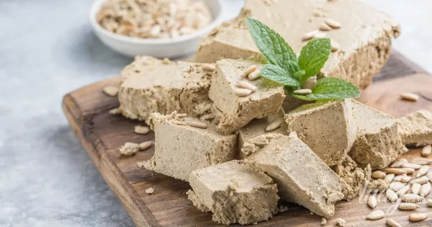 Соняшникова халва готується з насіння соняшнику і часто зустрічається в домашніх рецептах. Вона багата вітамінами групи В і F, корисна для серця, допомагає очищати кров від холестеринових бляшок і нормалізує кислотність у кишечнику.