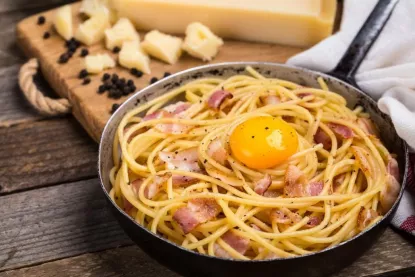 Справжня італійська карбонара готується без вершків. У соусі лише яйця, сир, бекон (гуанчале або панчета) і чорний перець, передають Патріоти України. Інгредієнти (2 порції):. Приготування:. Подайте одразу, посипавши додатково сиром і чорним перцем. Се...