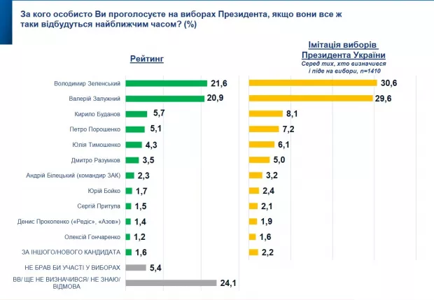 В першому турі вони б набрали 22% і 21% відповідно. Водночас зросла частка людей, яким важко відповісти, за кого б вони проголосували (24,1%, у жовтні таких було 21,1%).