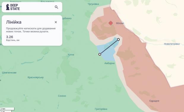 За даними Deep State, українські бійці просунулися більш як на 3 км в напрямку державного кордону та повернули контроль над лісовим масивом північніше села Амбарне у Великобурлуцькій громаді в Куп’янському районі.