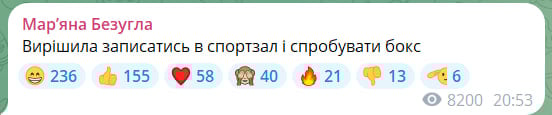 Українська нардепка Мар'яна Безугла 20 грудня в Telegram написала, що планує зайнятися спортом, передають Патріоти України. "Вирішила записатися у спортзал і спробувати бокс", – заявила 37-річна нардепка. . Про свій намір вона повідомила за кілька дні...