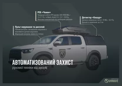 Українська компанія Unwave представила багатоканальний комплекс радіоелектронної боротьби CVN "Човен-2" для захисту рухомої техніки від безпілотників. Про це йдеться на сайті компанії, передають Патріоти України. . Рішення виконали у вигляді автомобіл...