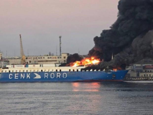 Напис Cenk RoRo на судні свідчить, що воно належить Туреччині. "Подробиці" звернули увагу, що на борту судна розміщені контейнери компанії АКСА (виробника дизельних, бензинових і газових генераторів та електростанцій).