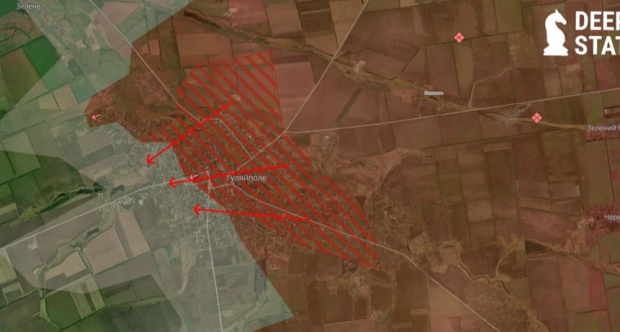 "Противник продовжує поглинати місто (Гуляйполе – ред.), відправляючи на постійні штурмові дії невеликі групи піхоти. В останньому оновленні (інформації на карті – ред.) всі могли побачити суттєве збільшення червоної зони в місті, де вже давно фіксувалися кацапи, весь час пробували закріпитися і з часом їх кількість в цій частині стала переважаючою, що змусило бійців Сил Оборони залишити позиції".