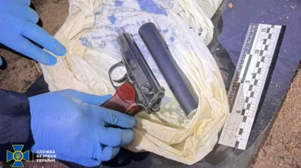 У спецслужбі стверджують, що крім цього, у ході слідчо-оперативних дій отримали відеозапис, на якому кілер облаштовує схрон з пістолетом у лісовій місцевості та "звітує" про це своєму кураторові з РФ.
