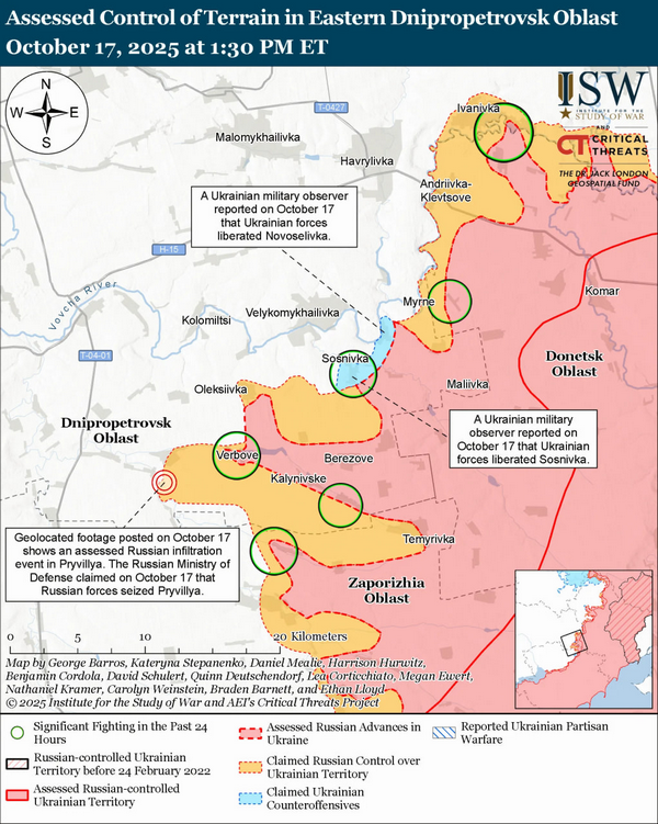 ISW також зазначив, що за повідомленням російських джерел, на цій ділянці фронту російські війська захопили Привілля та змогли просунутися на південний схід від населеного пункту до північної частини села Вишневе.