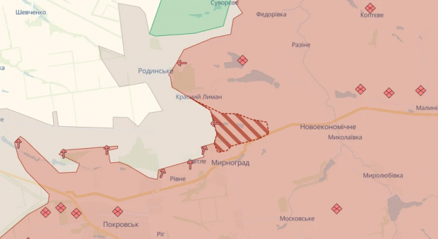За даними аналітиків, на Донеччині зафіксовано просування російських військ поблизу Платонівки на Словʼянському напрямку. Також ворог мав успіхи у Мирнограді. Крім того, повідомляється, що було зачищено район проникнення окупантів поблизу Білицького на Покровському напрямку.