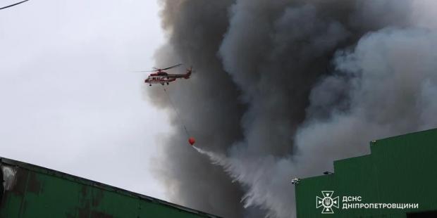ДСНС своєю чергою повідомила, що у Дніпрі триває ліквідація пожежі після ракетної атаки. До гасіння вогню на складах залучено авіацію.