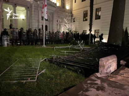 У Тбілісі протестувальники штурмують президентський палац Орбеліані, почалися сутички з поліцією. Про це пишуть SOVA та "Ехо Кавказу", передають Патріоти України. Акція протесту відбувається на тлі муніципальних виборів у Грузії 4 жовтня, які бойкотува...
