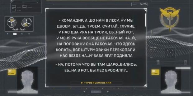 Проте його скарги не переконують старшого начальника — він наполягає, щоб підлеглі вийшли на позиції. «Двійка ваша і друзі, чому ви втекли з лісу, там, де повинні були перебувати. В нас є точки для конкретного завдання, які я позначив, ви повинні бути на точці, на конкретній точці. Я все сказав: давай, бери речі і швидко на точки», — кричить командир окупантів.