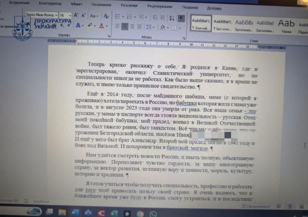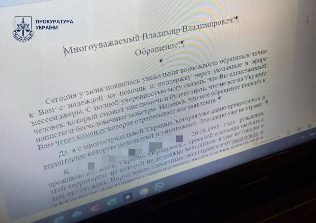Експертизи підтвердили протиправні висловлювання підозрюваної. «Під час обшуку вдома у підозрюваної виявлено листи до Путіна та невідомих адресатів від імені сина жінки, в яких він просить допомогти йому виїхати з України, оскільки «не хоче жити серед нацистів» та бачить своє майбутнє в Росії», – йдеться у повідомленні.